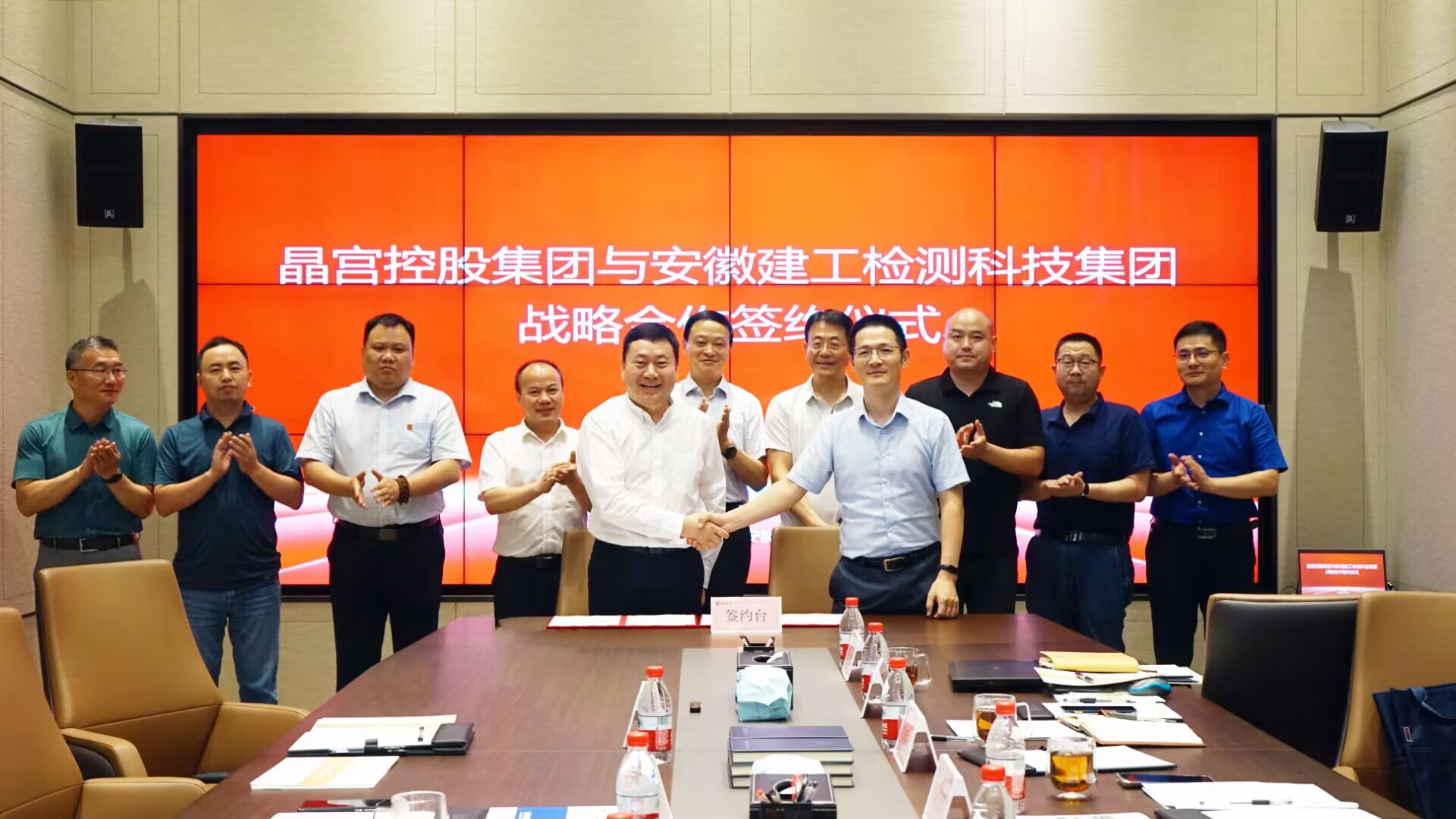 會后,建工檢測集團與晶宮控股集團在與會人員的見證下簽訂了戰略合作協議。