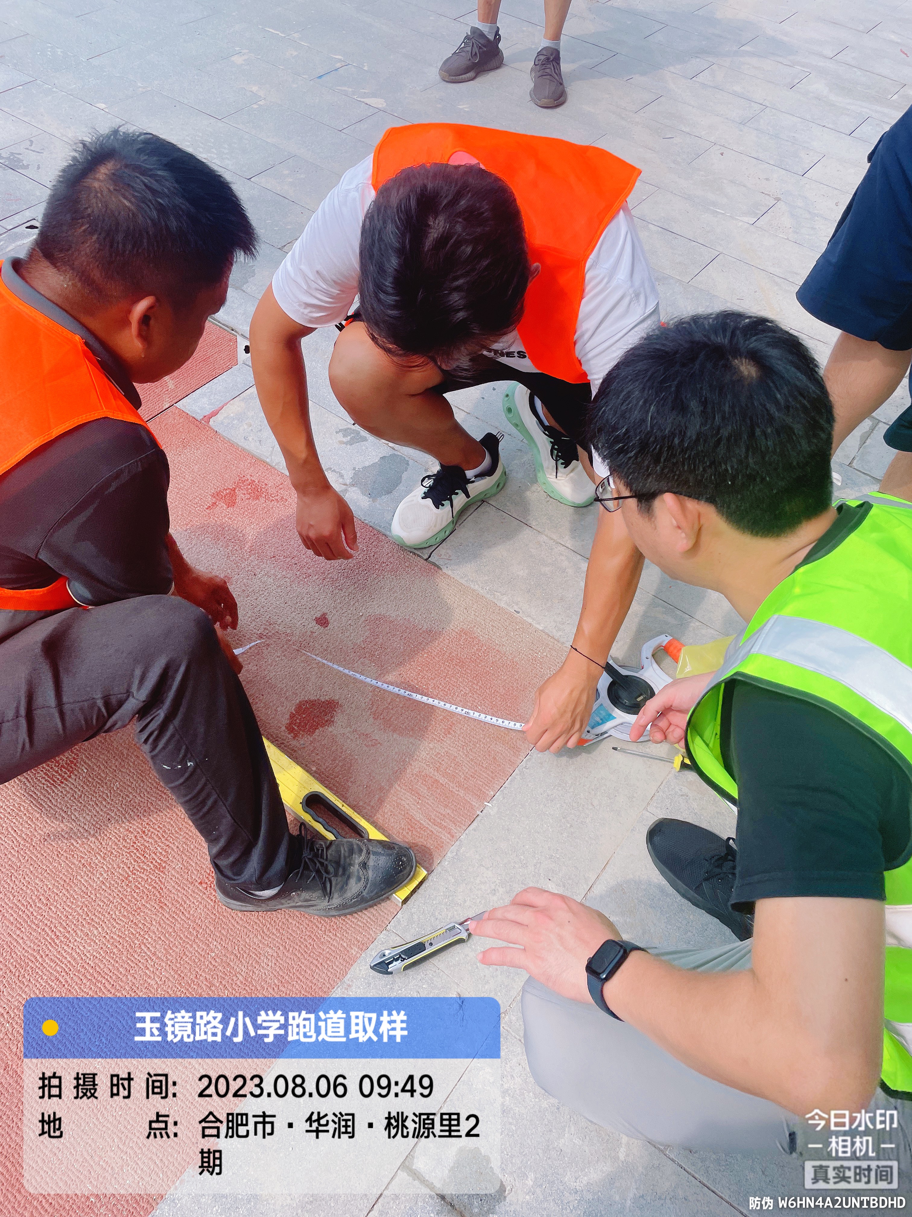 為將習(xí)近平新時代中國特色社會主義思想主題教育走深走實,努力推動校安工程檢測高質(zhì)量發(fā)展,確保孩子們新學(xué)期能有一個安全、健康的學(xué)習(xí)環(huán)境,建工檢測環(huán)境與衛(wèi)生測評所受合肥市蜀山區(qū)重點工程建設(shè)管理中心委托,于8月6日、7日在蜀山區(qū)教體局、蜀山區(qū)重點局、校方、家長代表四方見證下,為即將投入使用的玉鏡路小學(xué)操場塑膠跑道、教學(xué)樓、綜合樓,開展現(xiàn)場取樣及室內(nèi)空氣樣品采集工作。
