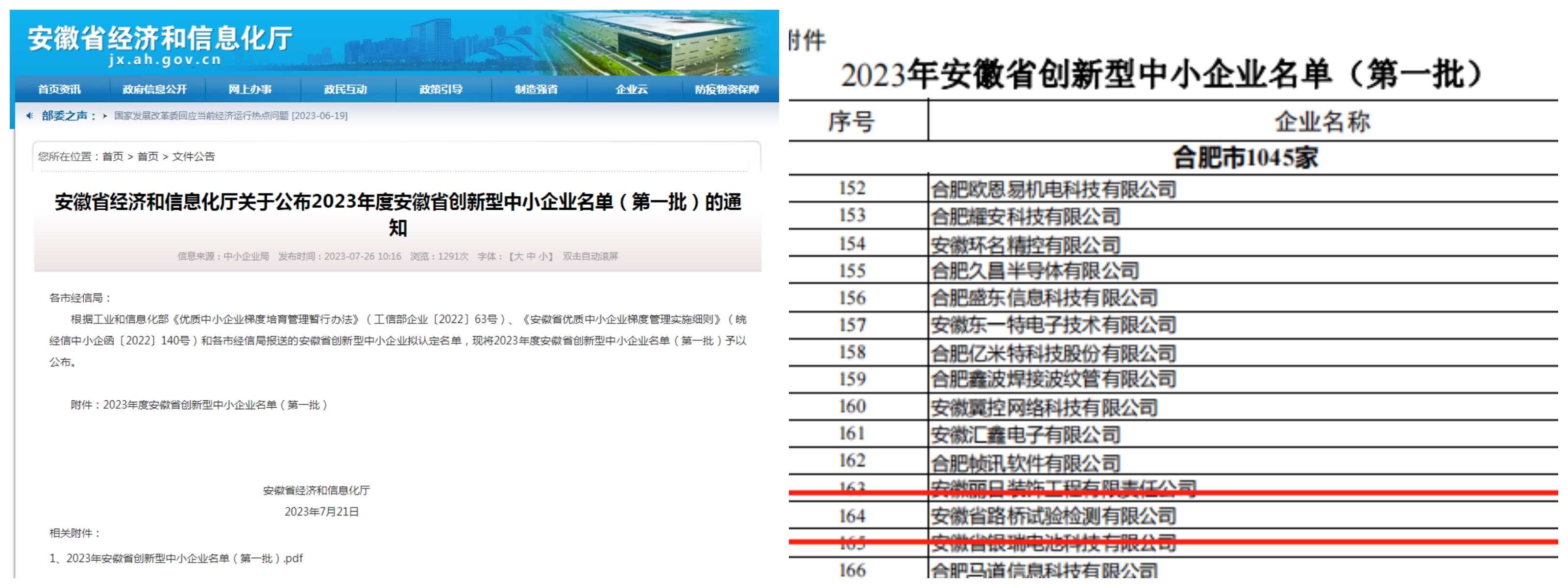 近日, 安徽省經(jīng)濟(jì)和信息化廳發(fā)布安徽省2023年度“創(chuàng)新型中小企業(yè)”名單(第一批)和 “專精特新中小企業(yè)”名單,安徽省路橋試驗(yàn)檢測(cè)有限公司兩項(xiàng)申報(bào)均獲批入選。