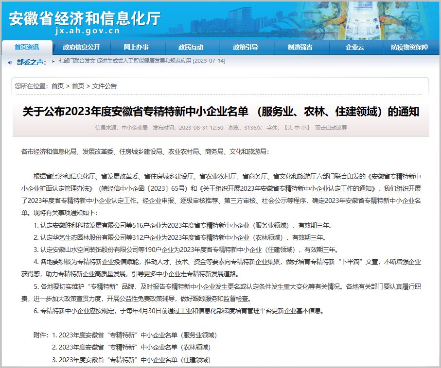 喜報(bào)!建工檢測及所屬兩家子公司榮獲2023年度安徽省 “專精特新”中小企業(yè)稱號
