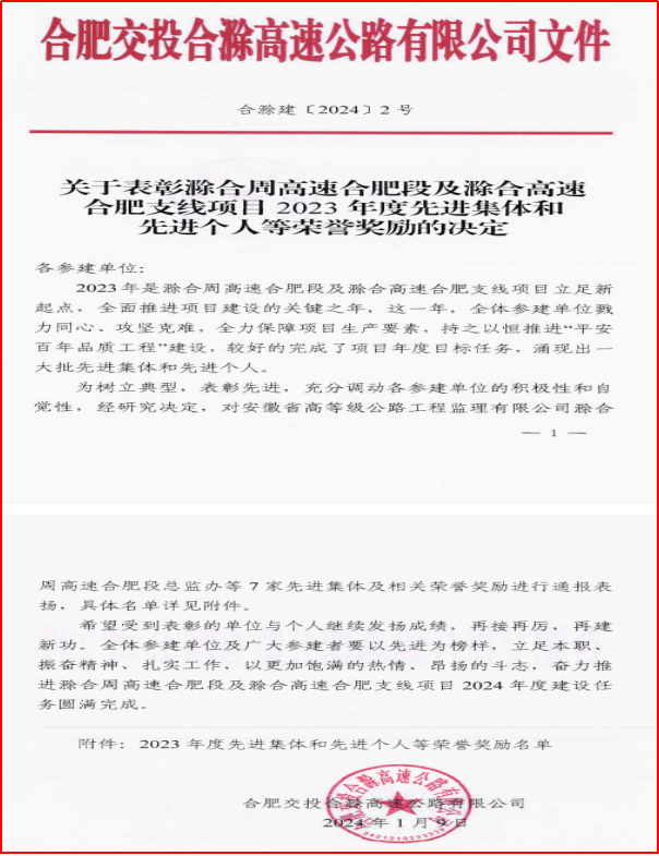 喜報!建工檢測路港通公司多個工地試驗室榮獲業主“優秀工地試驗室”表彰