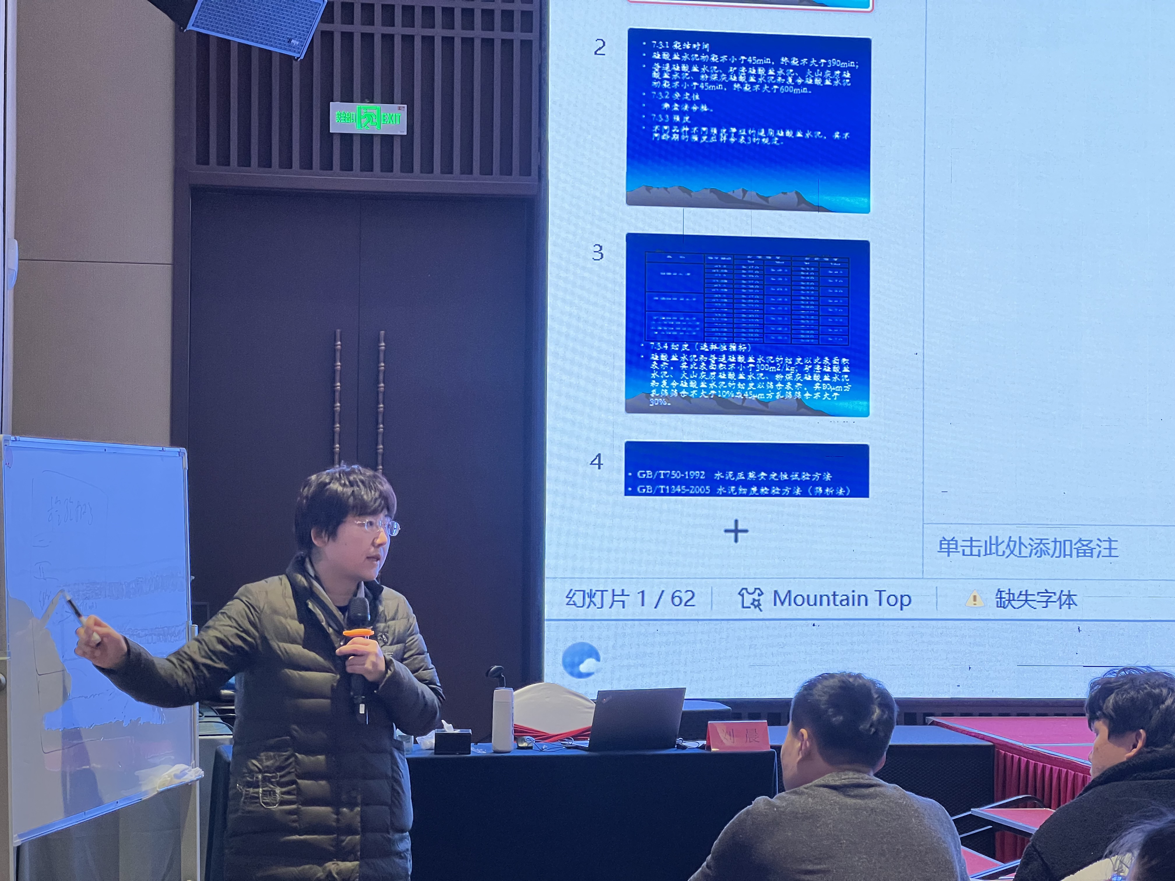 本次培訓邀請的主講老師是《通用硅酸鹽水泥》GB175-2023標準的主要起草人、中國建筑材料科學研究總院教授級高工、全國水泥標準化技術(shù)委員會副秘書長劉晨老師。劉老師針對《通用硅酸鹽水泥》標準中引用的一些重要標準、水泥組分的細化和調(diào)整、水泥混合材料標準的修訂內(nèi)容、主要技術(shù)指標要求以及對前期發(fā)布的《水泥膠砂強度檢驗方法(ISO法)》等7個標準所涉及的水泥標準稠度用水量、凝結(jié)時間、安定性、強度、比表面積、篩析法、壓蒸安定性等七項物理性能試驗方法介紹講解,同時包括對儀器設(shè)備選擇、標定、操作步驟及要領(lǐng)、數(shù)據(jù)處理等實際操作要領(lǐng)進行了詳細授課;并積極與在場參培人員探討交流了水泥檢測中遇到的難題和解決措施,幫助參培人員答疑解惑。