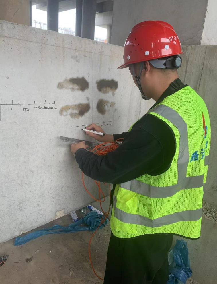 范春生,路港通檢測外檢事業部檢測員,正在對一項目的混凝土結構進行裂縫深度的檢測?;炷两Y構的裂縫是結構問題中最常見的。深度是評估其安全性的重要指標之一。掌握混凝土測裂縫深度的方法和意義,可以幫助大家更好地了解混凝土結構的安全性,及時發現結構裂縫問題,采取相應的措施進行修復和加固,有效預防結構事故的發生。
