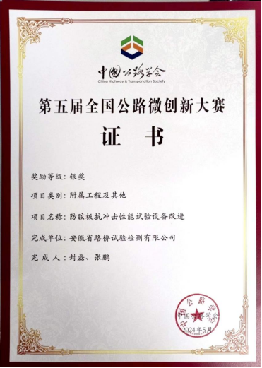 銀獎!路橋檢測公司榮獲第五屆全國公路微創(chuàng)新大賽獎項