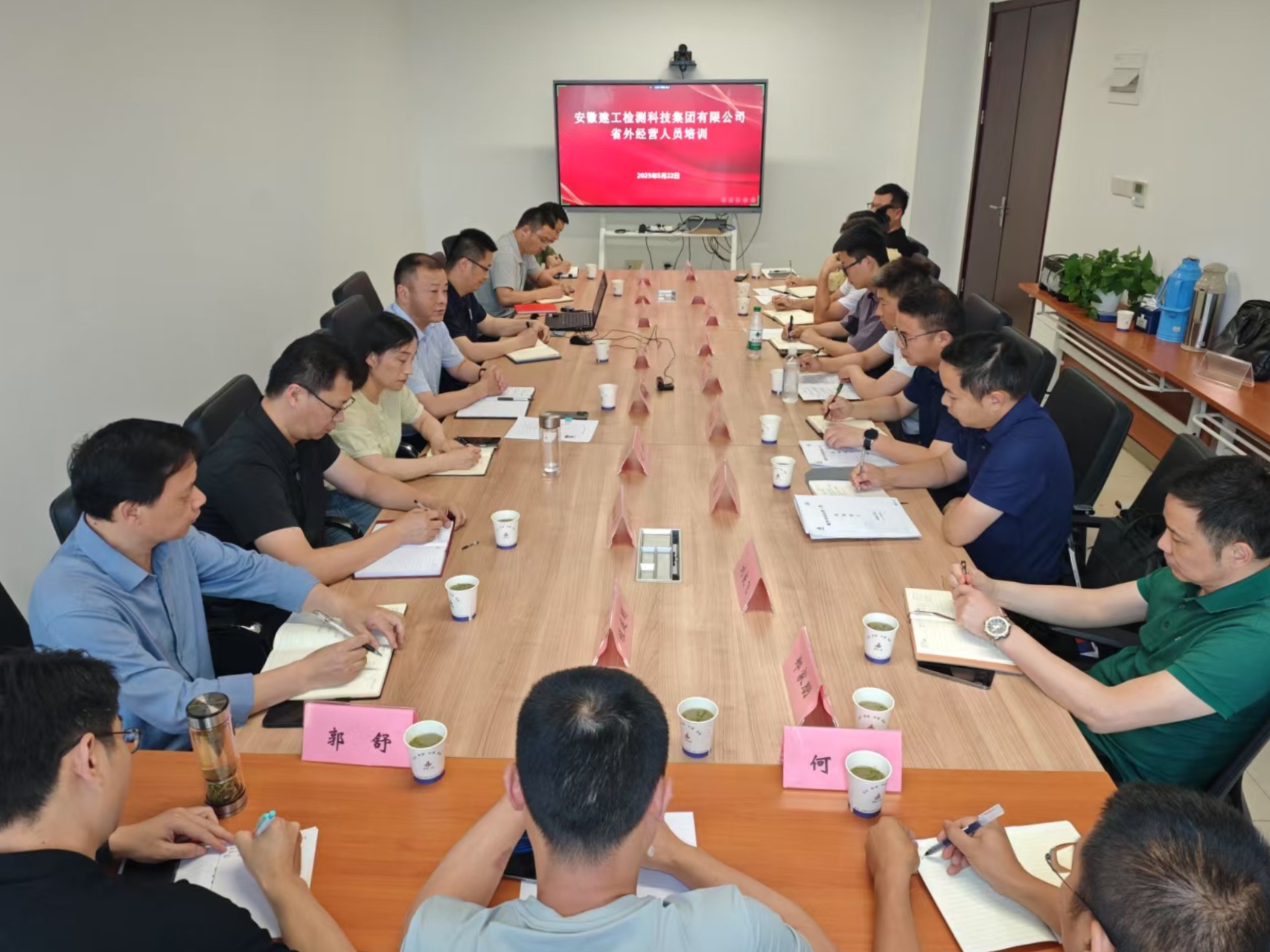 建工檢測省外檢測站經營人員視頻參加,擬派駐省外經營人員、各中心省外經營負責人及有意向參與省外經營的人員現場參加培訓。