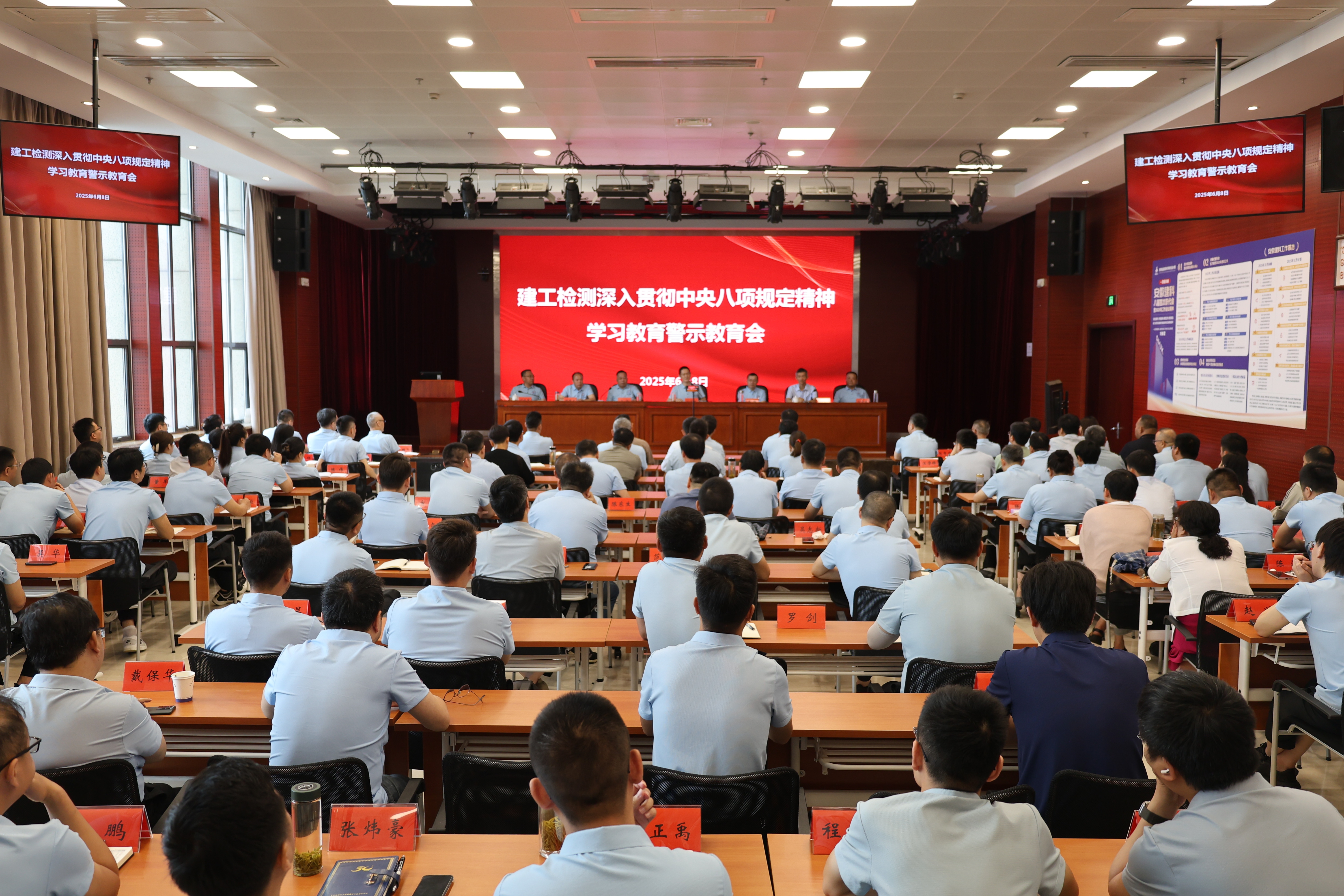 6月8日上午,建工檢測公司黨委召開深入貫徹中央八項規定精神學習教育警示教育會。會議深入學習貫徹習近平總書記關于加強黨的作風建設的重要論述,深刻剖析反面典型案例,以案為鑒、警鐘長鳴,教育引導廣大黨員干部進一步筑牢遵規守紀的思想堤壩,推動學習教育走深走實,為公司高質量發展提供堅強作風保障。公司黨委書記、董事長方申柱出席會議并講話。