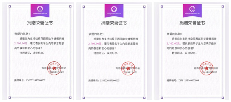 為人民謀幸福是共產黨員的初心。多年來,陳敏同志始終堅守共產黨員初心和使命,心系貧困地區貧困學生,自2018年起,先后多次通過格桑花西部助學公眾號向多杰桌瑪捐款助學金,共計7300元,為扶貧助學貢獻了一份力量。陳敏還通過格桑花志愿者多次轉達對多杰桌瑪的美好祝愿和殷切希望,并鼓勵多杰桌瑪要勇于克服困難,珍惜時間,認真讀書,長大后做個對社會和國家有用的人。