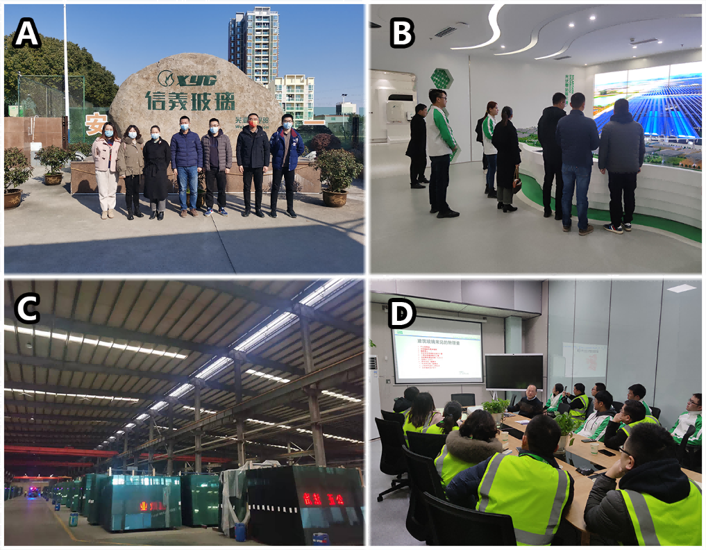 在信義技術人員的引導下,幕墻所一行7人參觀了公司展廳、廠區車間、實驗室等關鍵節點,隨后進行了技術交流。信義公司著重介紹了主要產品的工藝過程、產品檢測、行業發展前景等內容,并聽取了我部門關于玻璃檢測、參數選取、標準制定等相關內容的介紹,隨后,雙方對存在的問題進行了深入的交流。