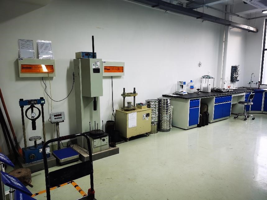 土工試驗(yàn)室主要承擔(dān)土的擊實(shí)、液塑限、顆粒分析、承載比和自由膨脹率等試驗(yàn);主要儀器和設(shè)備有電動(dòng)擊實(shí)儀、表面振動(dòng)壓實(shí)儀、路面材料強(qiáng)度儀、CBR測定儀、液塑限聯(lián)合測定儀、土壤自由膨脹率測定儀等。