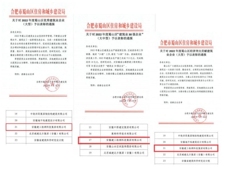 喜訊!我司榮獲2022年蜀山區(qū)“優(yōu)秀建筑業(yè)企業(yè)”、“建筑業(yè)30強企業(yè)”、“經濟突出貢獻建筑業(yè)企業(yè)”三項榮譽